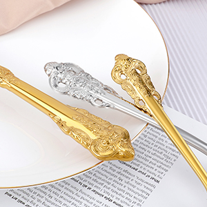 This flatware is also a popular one. It is made of 18 / 10 stainless steel. The appearance design is very beautiful and retro. It has a style of royal court. It is very high-grade to have this set of flatware. Eating with it will make people feel extremely happy and noble.